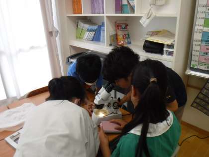 6月27日(火)5年生は理科でメダカのたまごを観察していました。まだ生まれたてのものや目玉が見えるものまであり、育ち方の違いが分かります。