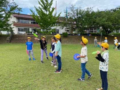 6月28日(水)4年生は、午前の活動に移りました。フライングゴルフとザリガニつりを行います。こちらは、フライングゴルフの様子です。え