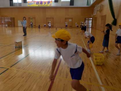 今日は体育の学習でボール投げゲームを行いました。段ボールやフラフープの的を狙って投げました。