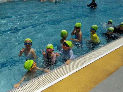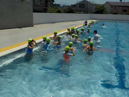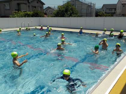 3年生になって、初めての水泳学習です。今日は、水に慣れるために、プールの周りをぐるぐるまわったり、友達と水中じゃんけんをしたりしました。友達と声をかけ合いながら、楽しく活動しました。