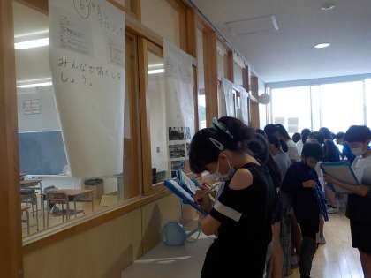 今までのプロジェクト活動の報告と2学期に全校で取り組む活動を決めるための投票を行いました。「どのプロジェクト活動だったら1年生も取り組めるかな。「ずっと続けられるのはどれかな。」など真剣に考えていました。