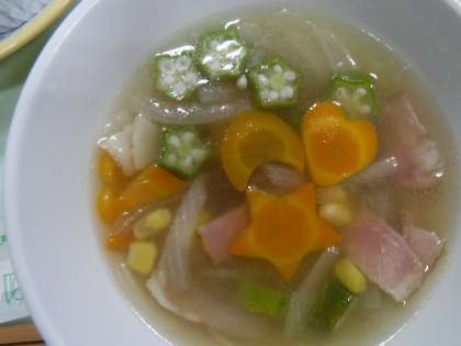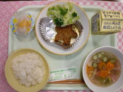今日は、七夕献立でした。ハンバーグが星形になっていたり、スープのニンジンが星形やハート型になっていたり。ゼリーにも星があり、随所に七夕らしい雰囲気を盛り上げる献立でした。