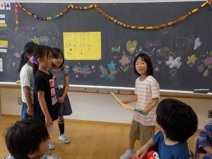2年1組では、みんなにこにこになるために話し合い、お楽しみ会を開きました。