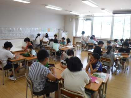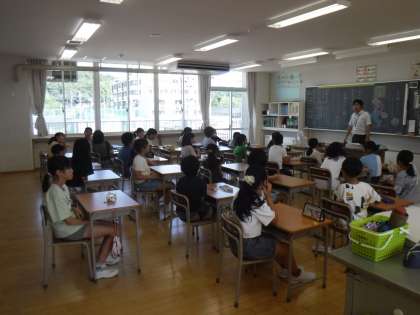 8月28日(月)4年生も元気いっぱい笑顔いっぱいでした。楽しそうに自由研究を見せ合ったり、これから紹介し合うところだったり。何だか背も伸びて、ぐんと大きくなっていました。