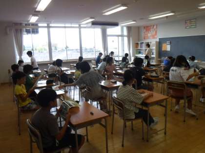8月28日(月)始業式では、真剣に話を聞く姿がさすが高学年でした。とても落ち着いた雰囲気とやるぞのいう意欲が感じられました。がんばりが楽しみですね。