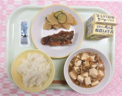 【献立】 ・ごはん ・牛乳 ・魚の利休揚げ ・華風和え ・豆腐の野菜あんかけ ・のりつくだに