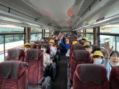 9月26日(火)6年生は宿泊学習に出発しました。体育館で出発式を行い、バスに乗って室堂に向かっています。