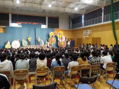 劇団風の子による「なるほ堂ものがたり」を鑑賞しました。2人の少年があるおじいさんとの出会いをきっかけに、本当の気持ちを伝えるようになるという友情の物語でした。子どもたちは物語に引き込まれ、劇を楽しんでいました。