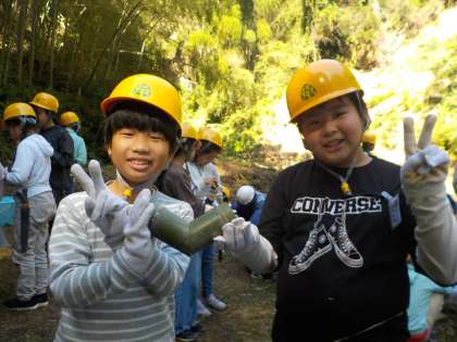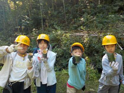 竹の伐採後は鉛筆立て作りにも挑戦しました!