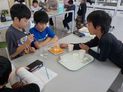 グループで考えた実験を行い、自分たちの予想を確かめました。