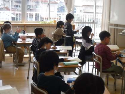 11月6日(月)2年生は、国語科の学習で、真剣に教科書を読んで考えていました。思いがたくさんあり、発表も進んでしています。