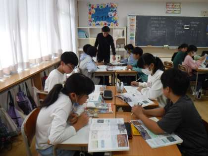 11月8日(水)6年生は、社会科の学習を行っていました。明治時代における偉人が行った政策等をグループで調べ、お互いに交流させていました。