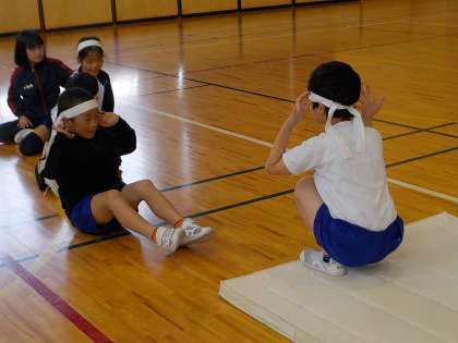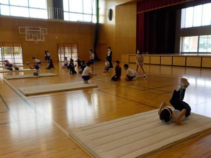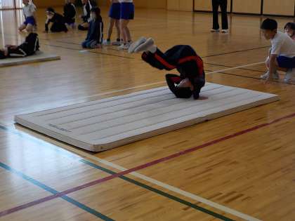 11月に入ってから、体育の学習では、マット運動をしています。「かっこいい後転」を目指して練習しています。上手な友達のお手本をよく観察したり、同じ色団の友達に教えてもらったりしながらがんばっています。