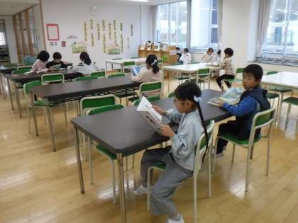11月20日(月)5限に1年生が図書室を訪問していました。借りた本を返したり読みたい本を読んだりしてゆっくり過ごしています。
