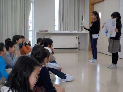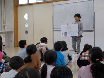 2学期の総合的な学習の時間では、自分がすてきだと思う人・ものについて調べてきました。今日は、これまでの関わりを通して分かったことや感じていることを友達に紹介しました。クイズを取り入れて、聞いている人が楽しく参加できるように工夫したり、友達の顔を見て話せるように発表原稿をしっかり覚えて臨んだりしていました。