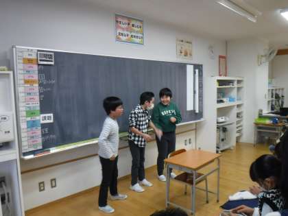11月30日(木)11月最終日の白鳥っ子タイム、5年生のお笑いライブを見ました。3人の明るく楽しい漫才にビックリ!クラスメートも大喜びで、最後にみんなで大きな拍手をしました。次回も楽しみです。