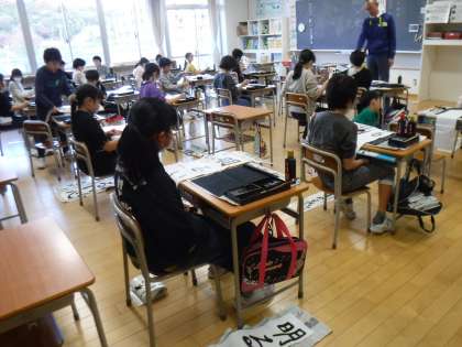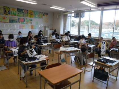 12月1日(金)4年生は書写の時間でした。書き初め練習が始まり、真剣に取り組んでいます。先生にポイントを教えてもらって書いています。