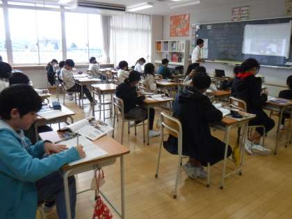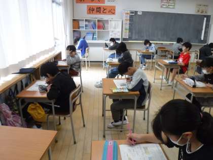 12月1日(金)5年生は、それぞれ社会科の学習とテストを行っていました。どちらのクラスもとても静かに集中して取り組んでいます。