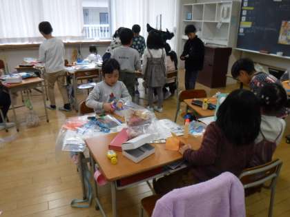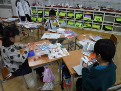 12月1日(金)1年生は、図画工作科の学習をしていました。箱に思い思いの飾りを付けて作品を作っていました。それぞれの個性が表れていいですね。