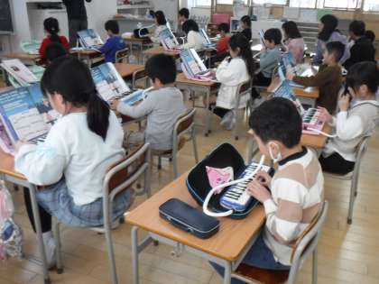 12月4日(月)1年生は音楽科の学習をしていました。鍵盤ハーモニカの演奏をみんなで合わせられるよう練習していました。