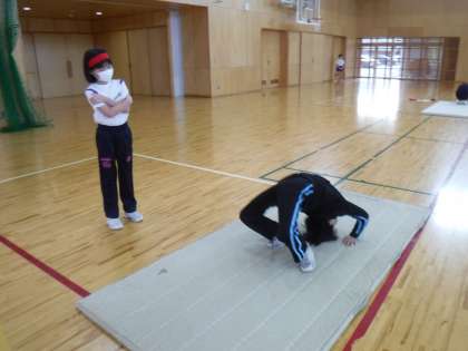 12月5日(火)3年生は体育科の学習でマットをしていました。一人一人自分のできる技に取り組み、完成度を上げようと頑張っています。
