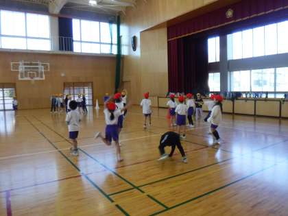 12月6日(水)1年生は、体育館で体育の学習を行っていました。ボールゲームを最後の方にしています。
