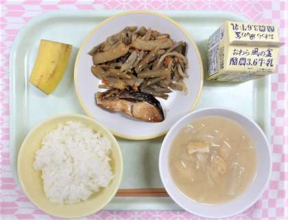 〜今日の給食 12月8日(金)〜 公開日 2023/12/08 更新日 2023/12/08 職員室より 【献立】 ・ごはん ・牛乳 ・ふくらぎの照り焼き ・茎わかめのきんぴら ・具だくさん汁 ・バナナ