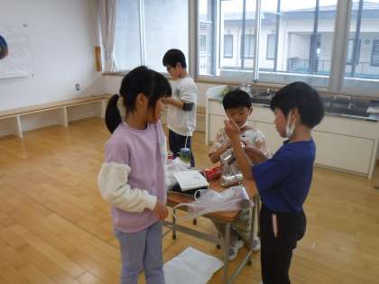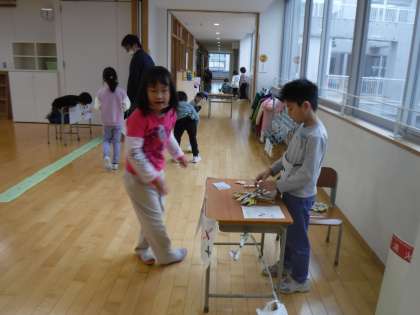 12月7日(木)1・2年生が生活科の学習で交流会をしました。今日は、2組同士です。場所を工夫して、やり方を教えている2年生が頼もしいですね。