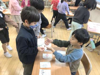 国語科「ものの名まえ」の学習で、ものの名前を集めてお店やさんごっこをしました。