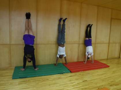 12月15日(金)6年生は、体育館でマット運動をしていました。各班で曲を決め、構成を考えた動きを考えているようです。倒立技の1つ、壁倒立をみせてもらいました。軽くできるところがすごいです。発表は来年、楽しみですね。