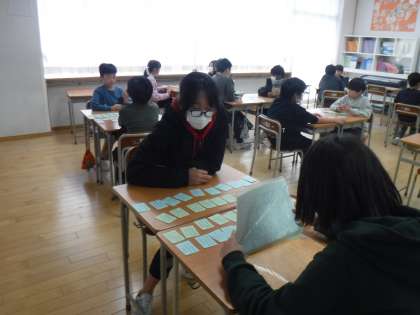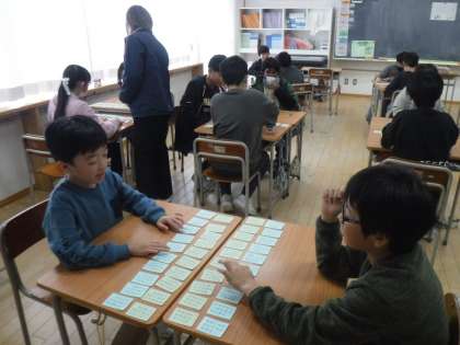 12月18日(月)5年生は、百人一首の練習中でした。得意な和歌を覚えていたり、全部をまんべんなく知っていたりと、取組方はそれぞれでいいですね。