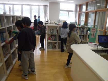 12月18日(月)冬休み前の本の貸し出しが始まりました。みんな思い思いの本を手に取り、嬉しそうに持ち帰っています。