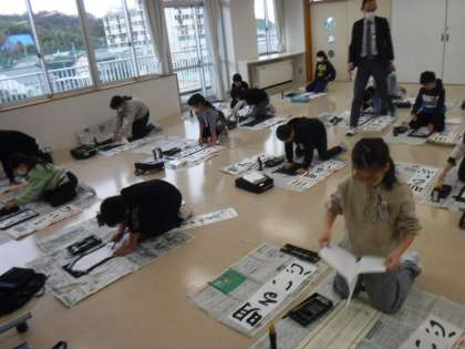 12月20日(水)4年生は、書き初め練習を行っていました。冬休み前にじっくり取り組み、字形や全体のバランス等について考えながら練習しています。