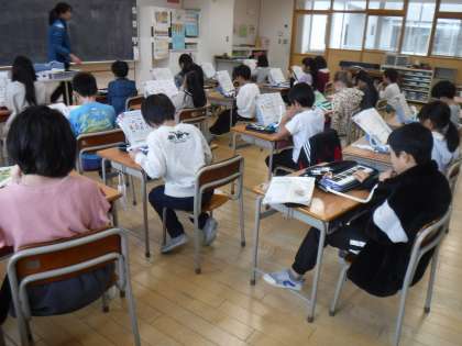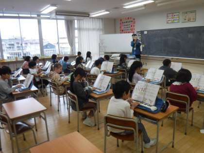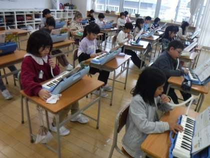 12月20日(水)2年生は、音楽の学習で鍵盤ハーモニカを吹いていました。階名を思い出しながら鍵盤に向かい合っています。