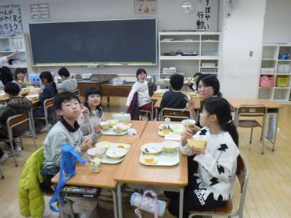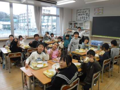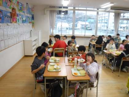 12月21日(木)今日は2学期最終の給食でした。3年生教室では、元気もりもり食べていました。「おいしいです!」と明るい3年生です。6年生が行っている「食べキリンプロジェクト」も継続しています。