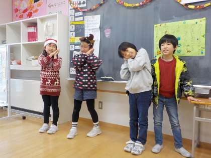 「クリスマス集会を開きたい」という提案があり、学級会で話し合いました。みんなにこにこになるための工夫がいっぱいの楽しい集会になりました。