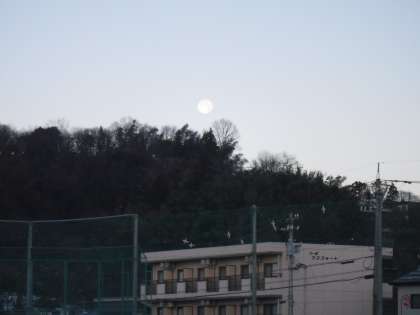 12月28日(木)昨夜は今年最後の満月でした。『コールドムーン』と呼ばれるそうです。今朝、西の空にまだ満月が明るく光って見え、呉羽山の向こうに沈んでいきました。