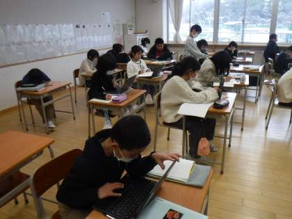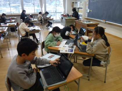1月16日(火)4年生は、社会科の学習で富山県内の市町村について調べています。クロムブックで調べることにも慣れています。