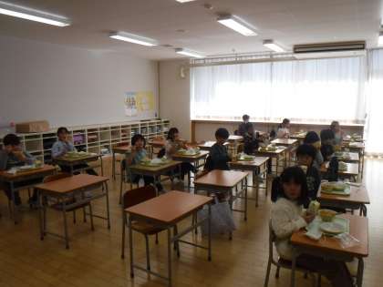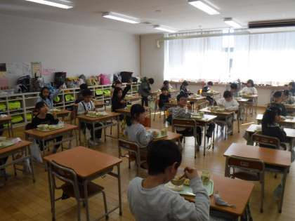 1月17日(水)今日は子供たちが大好きなソフト麺の給食です。みんなもりもり美味しそうに食べていました。今日学校保健委員会で習った大事な「食事」で、栄養をしっかり取りましょう。