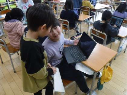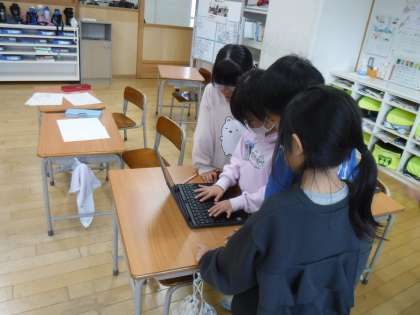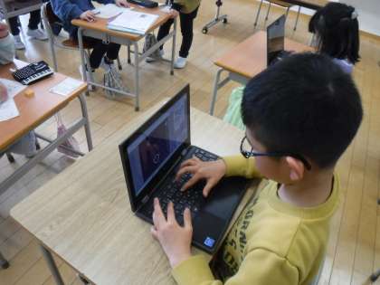 1月22日(月)1年生は、パソコンでタイピング練習をしていました。随分上手になっている子がいます。友達の様子を見て、また練習です。