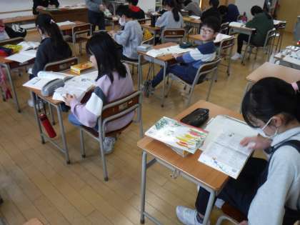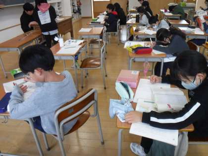 1月22日(月)4年生は、国語科の新しい学習に入っていました。始めて読む文章なので、分からない言葉を国語辞典で調べて、ノートにまとめています。