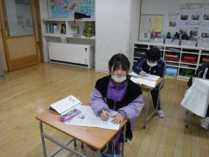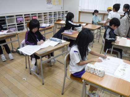 1月23日(火)2年生は、国語科の学習で、いろいろな遊びの遊び方や特徴を文章に書いてまとめています。丁寧な字で書いていますね。