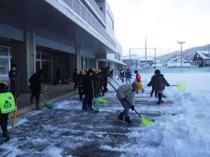 24日(水)、25日(木)と積雪がありました。朝、6年生が雪かきをして児童玄関前をきれいにしてくれました。