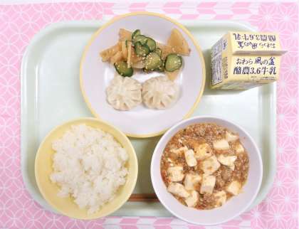 【献立】 ・ごはん ・牛乳 ・えびパオツ ・華風和え ・マーボー豆腐