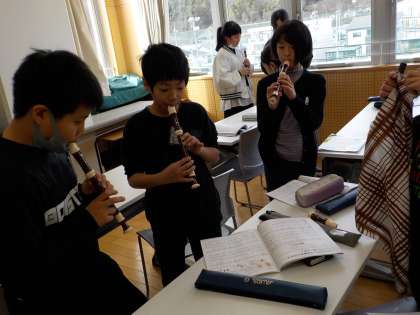 合奏では、友達と息を合わせて、きれいに演奏できるように何度も練習しました。