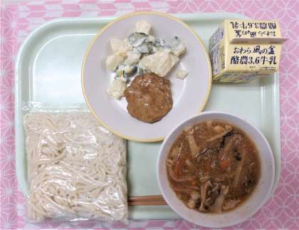 【献立】 ・ソフト麺 ・牛乳 ・ソフト麺の五目あん ・鶏つくね ・ポテトサラダ