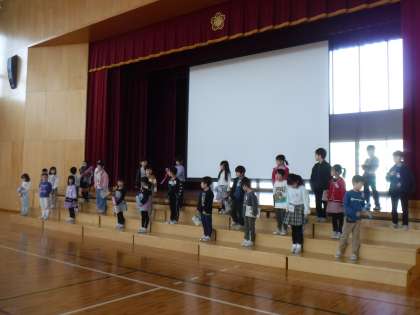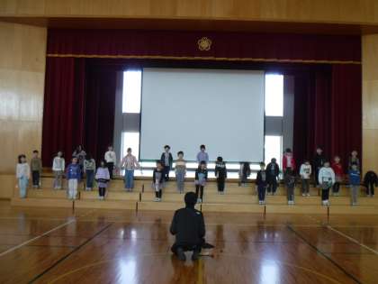 2月15日(木)1年生は、学習参観に向けて、体育館で通しの練習を行っていました。自分の台詞を言うタイミングをみたり、ステージ上での位置を確かめたりしていました。堂々と発表する様子がとても素敵です。