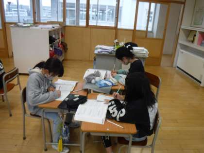 2月22日(木)4年生は、グループに分かれ、算数で習ったところの復習を行っていました。分からないところは教え合ったり、集中して取り組んだりしています。
