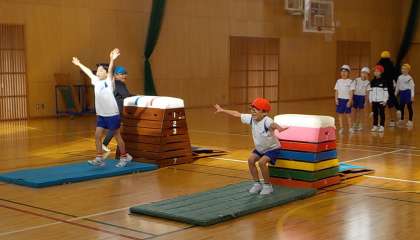 2年生の体育科では、跳び箱に挑戦しています。今日は、3段から7段を縦や横にして練習しました。