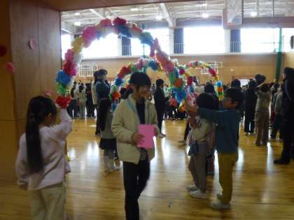 最後は、みんなでアーチを作り、6年生さんに通ってもらいました。みんな笑顔です。